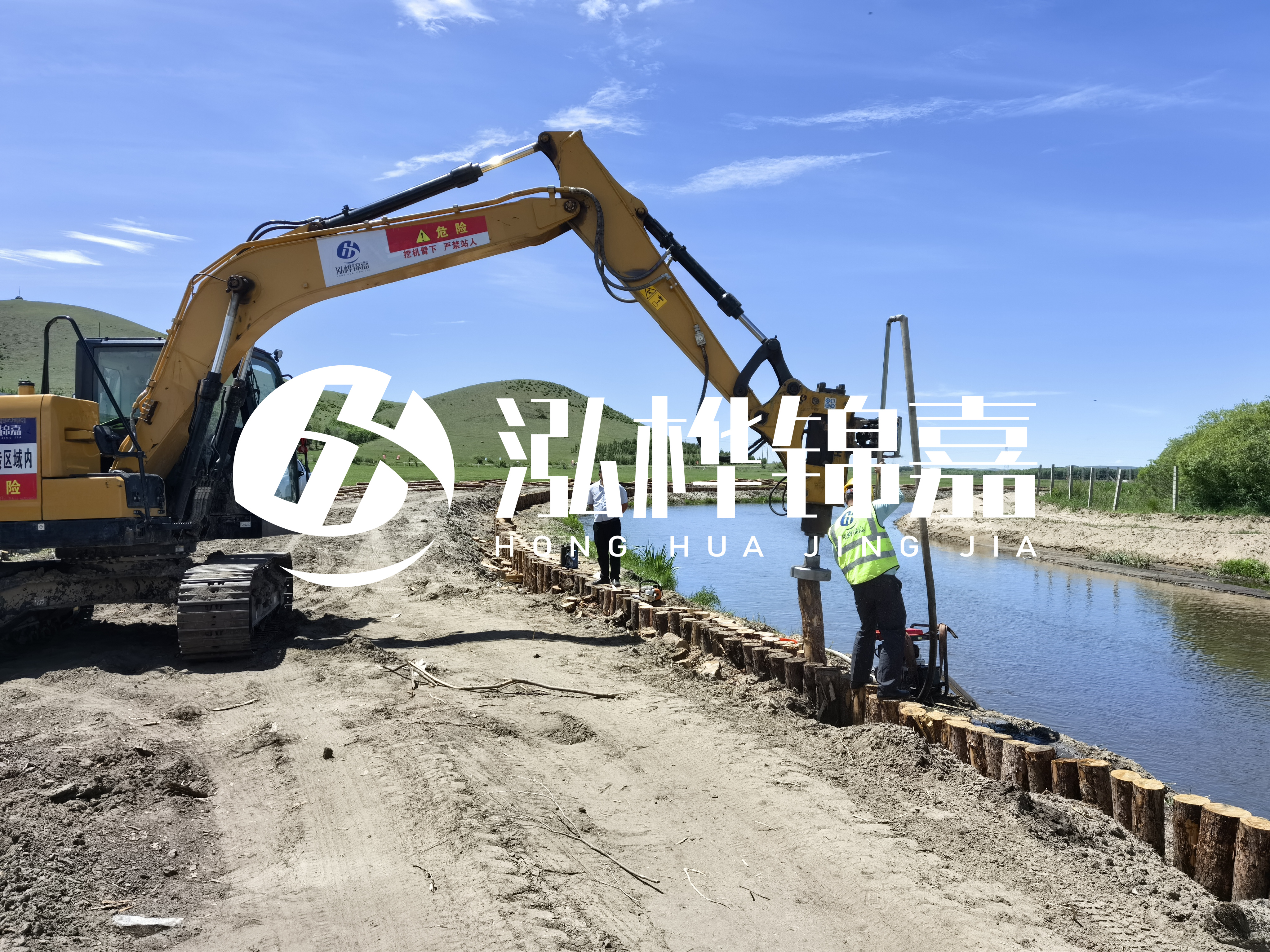 - 挖掘機(jī)配備的液壓打樁機(jī):這是目前最常見的打樁方式之一。挖掘機(jī)本身具有較強(qiáng)的挖掘和搬運(yùn)能力,配備液壓打樁機(jī)后,可以方便地將松木樁準(zhǔn)確地打入指定位置。