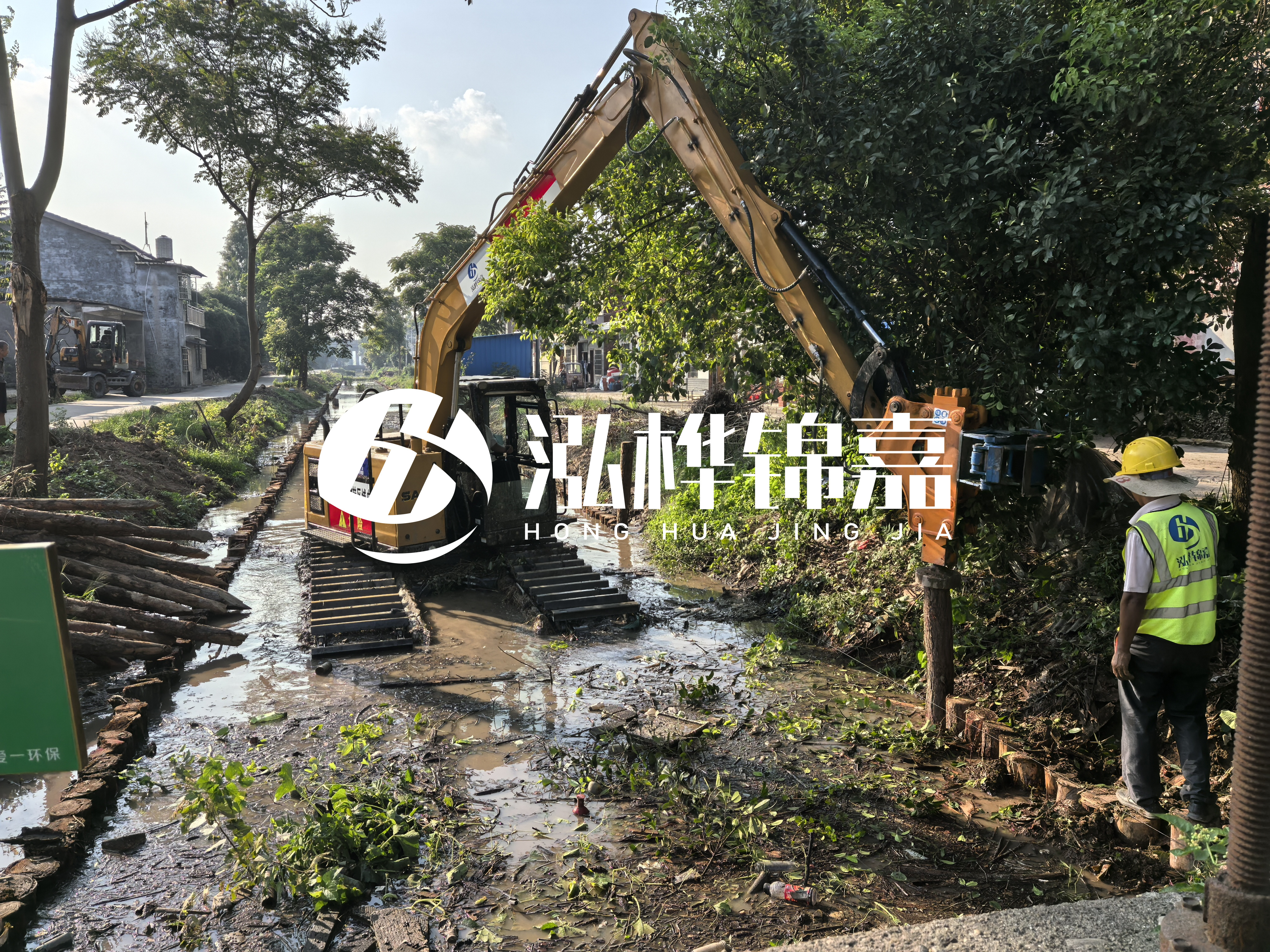 水挖(也就是水上挖掘機)的液壓錘功率直接決定能打多長的樁。普通 60 型水上挖掘機,液壓錘沖擊力有限,最多打到 5 米就很吃力了 —— 就像人用小錘子敲長釘子,容易把釘子敲彎。而大型 200 型以上的水挖,液壓系統(tǒng)能提供足夠的沖擊力和穩(wěn)定性,才能駕馭 8 米以上的長木樁。泓樺錦嘉能打 8 米木樁,首先靠的就是設(shè)備優(yōu)勢。他們用的是定制款水上挖掘機,液壓錘經(jīng)過改裝,沖擊力比常規(guī)設(shè)備提升 30%,而且機身配重更合理,在水面作業(yè)時減少晃動,避免長木樁因受力不均斷裂。