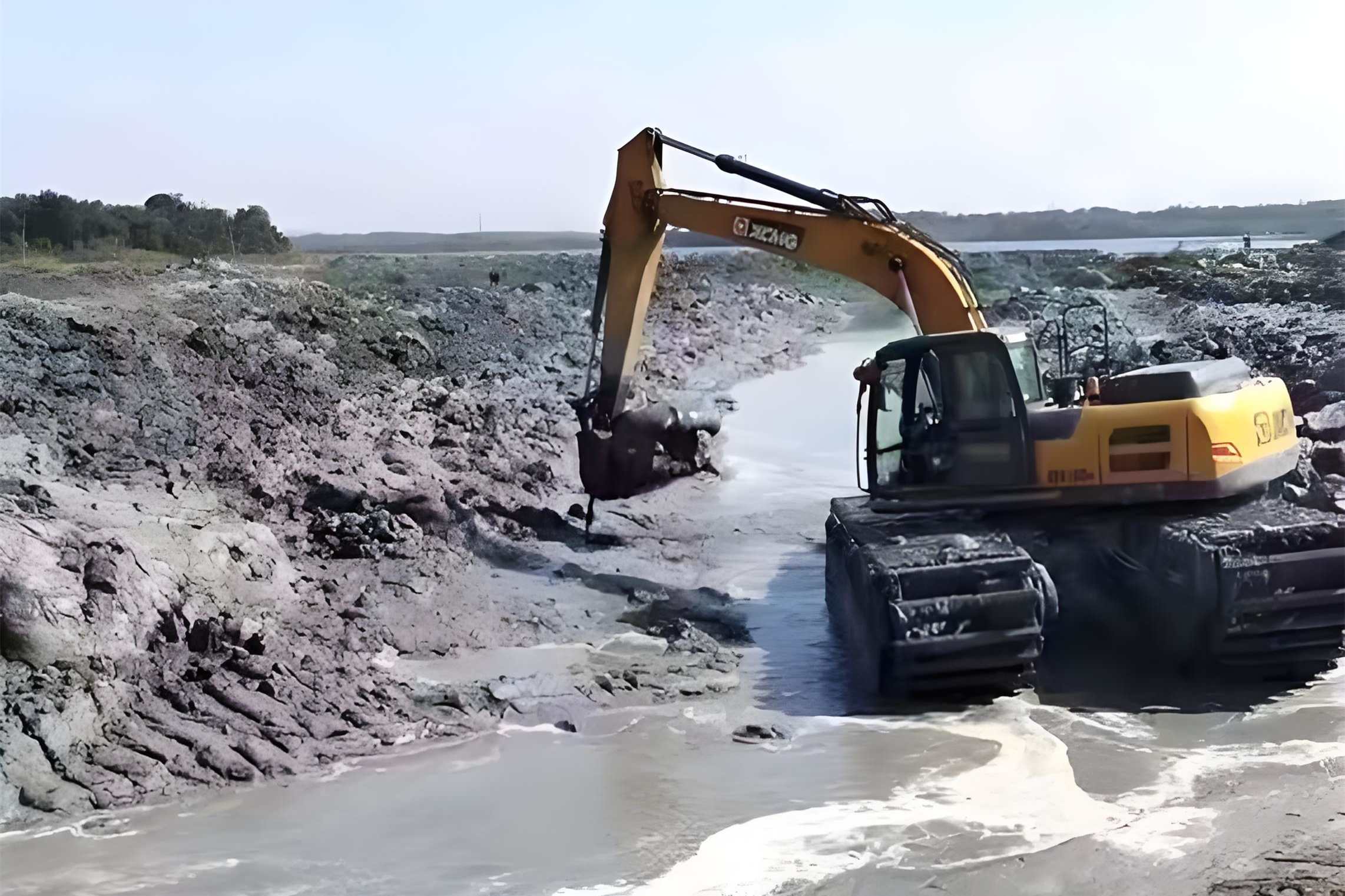 淤泥的粘稠度也很影響。稀泥像粥一樣,挖斗一挖就能提上來,速度快;要是淤泥里混著硬土塊、碎石,甚至有樹根纏繞,挖斗得反復(fù)撬動(dòng),還容易卡料,效率起碼打五折。