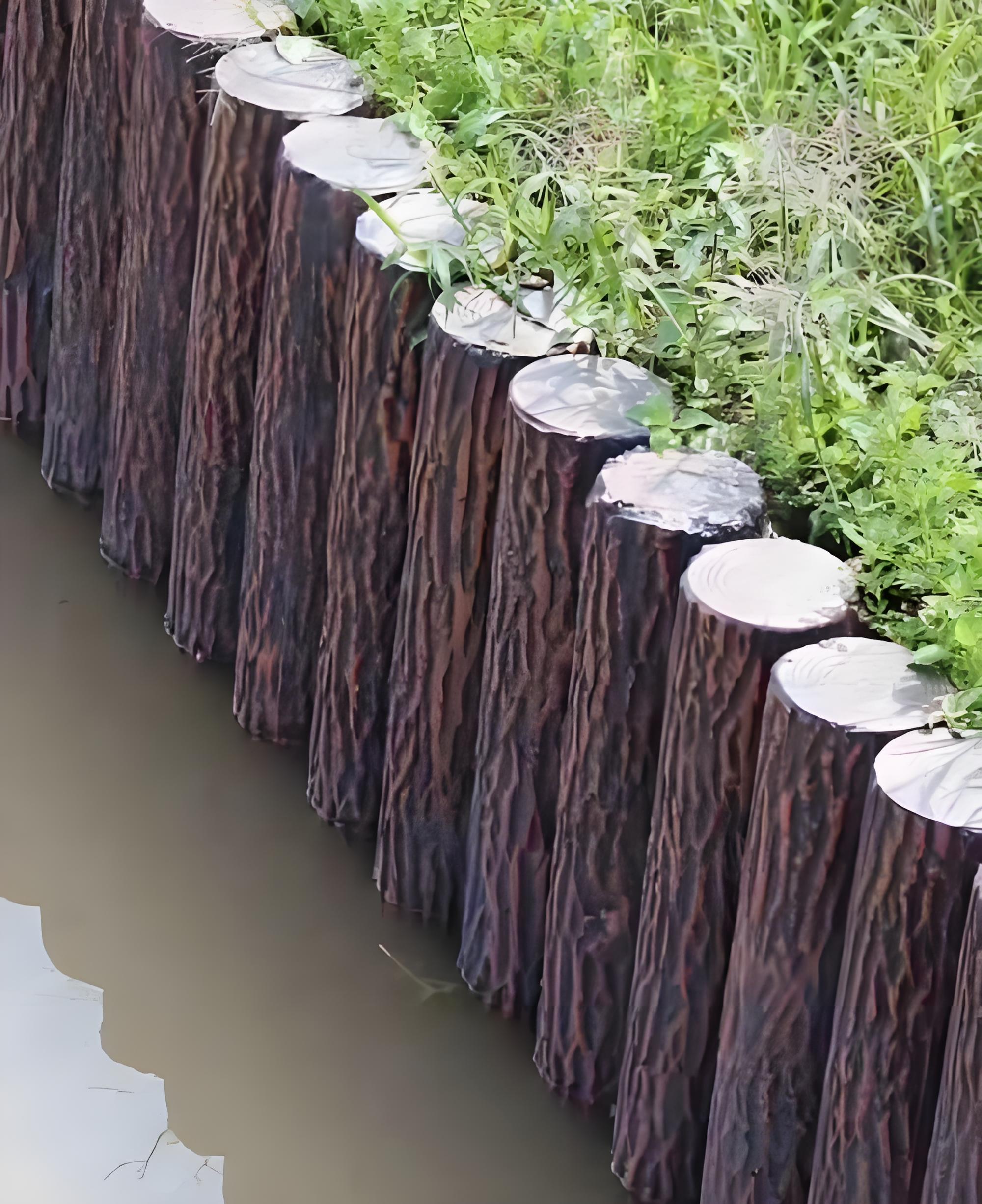 做河道護(hù)坡、庭院圍欄時(shí),很多人糾結(jié)選實(shí)木樁還是水泥仿木樁 —— 畢竟 “仿木” 看著像木頭,卻比實(shí)木硬不少。如果是潮濕、多蟲的環(huán)境(比如河岸、沼澤邊),實(shí)木樁可能 3-5 年就會腐朽,水泥仿木樁卻能穩(wěn)用 30 年。