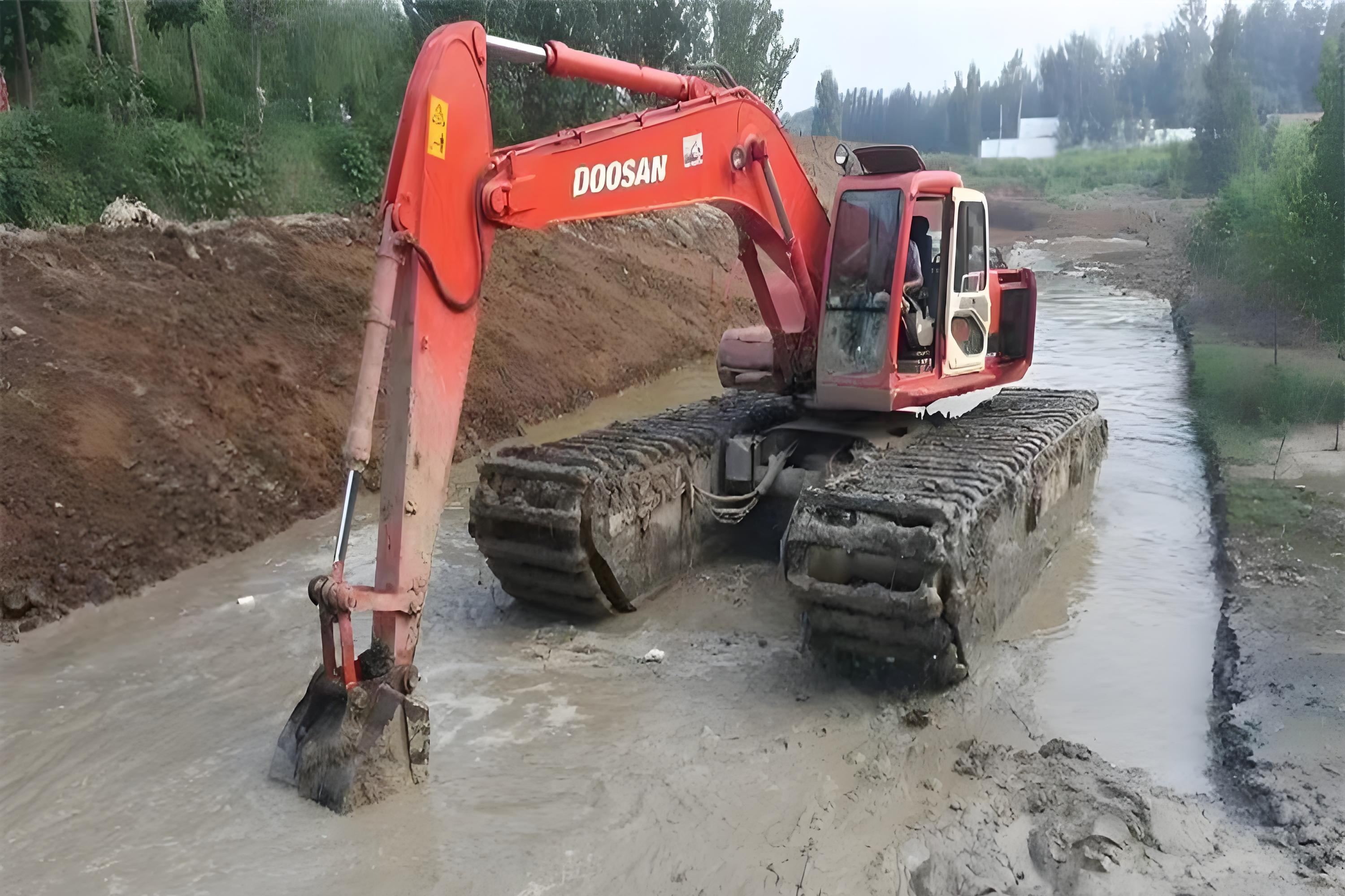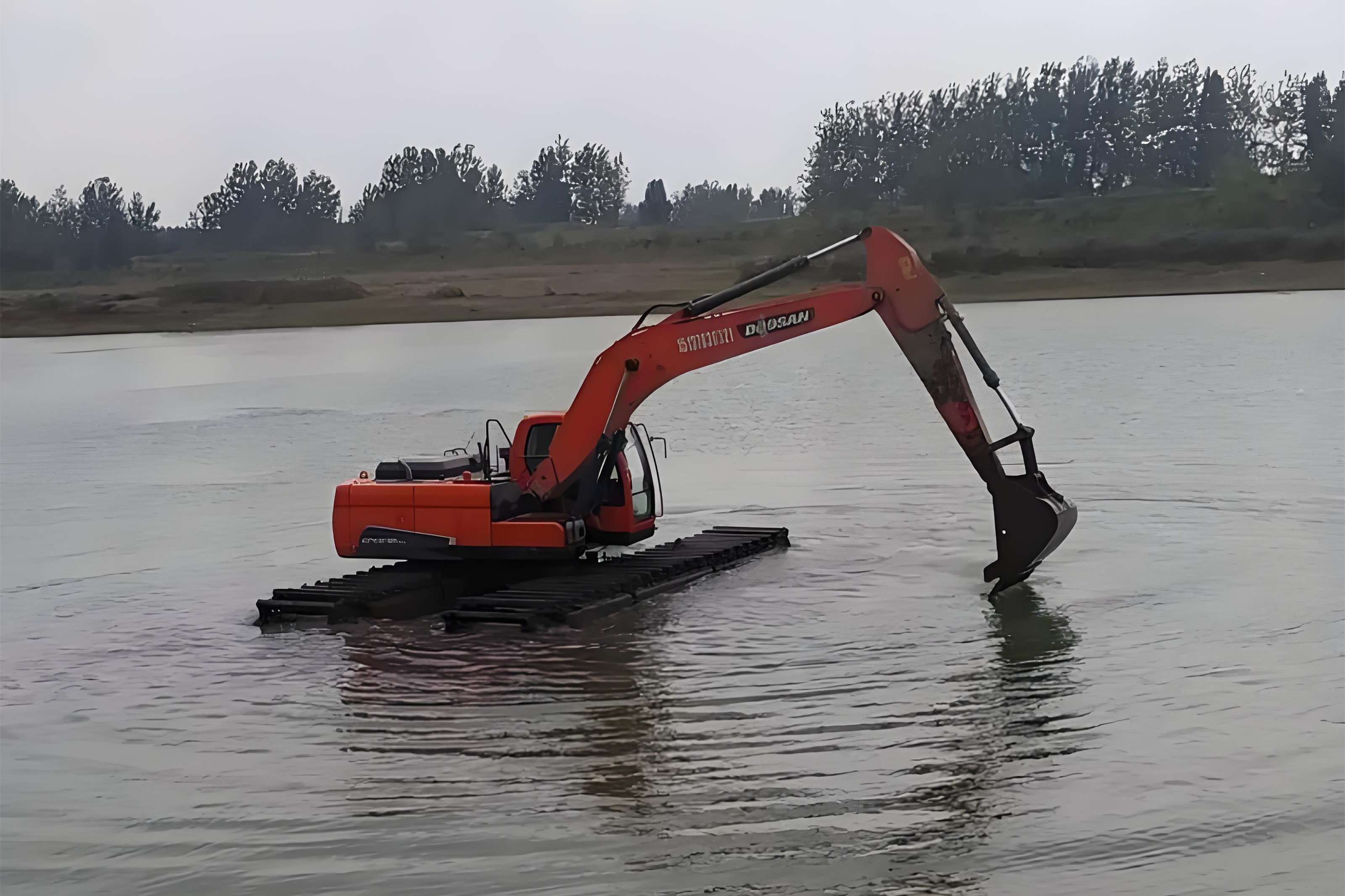 還有些特殊情況會用到水陸兩用挖掘機,這種設備的履帶像船一樣寬大,甚至能在淺水中漂浮作業(yè),不過成本較高,一般在超深淤泥區(qū)才會啟用。