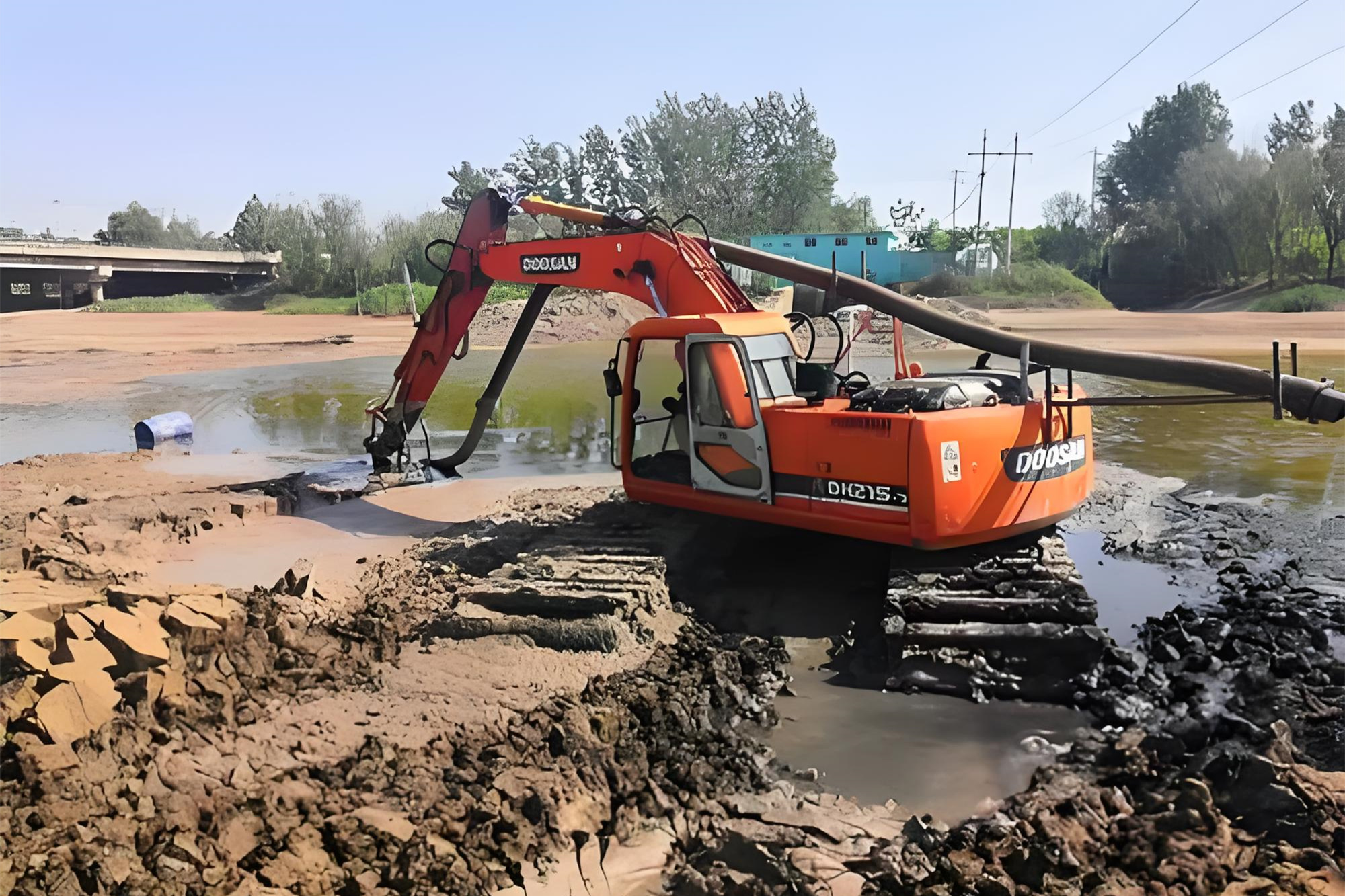 應(yīng)對辦法:清淤前先用探測設(shè)備檢查水底雜物,人工清理大型障礙物;作業(yè)時(shí)若發(fā)現(xiàn)鏟斗卡頓,立即停機(jī)檢查,不要強(qiáng)行操作,必要時(shí)更換耐磨型斗齒。